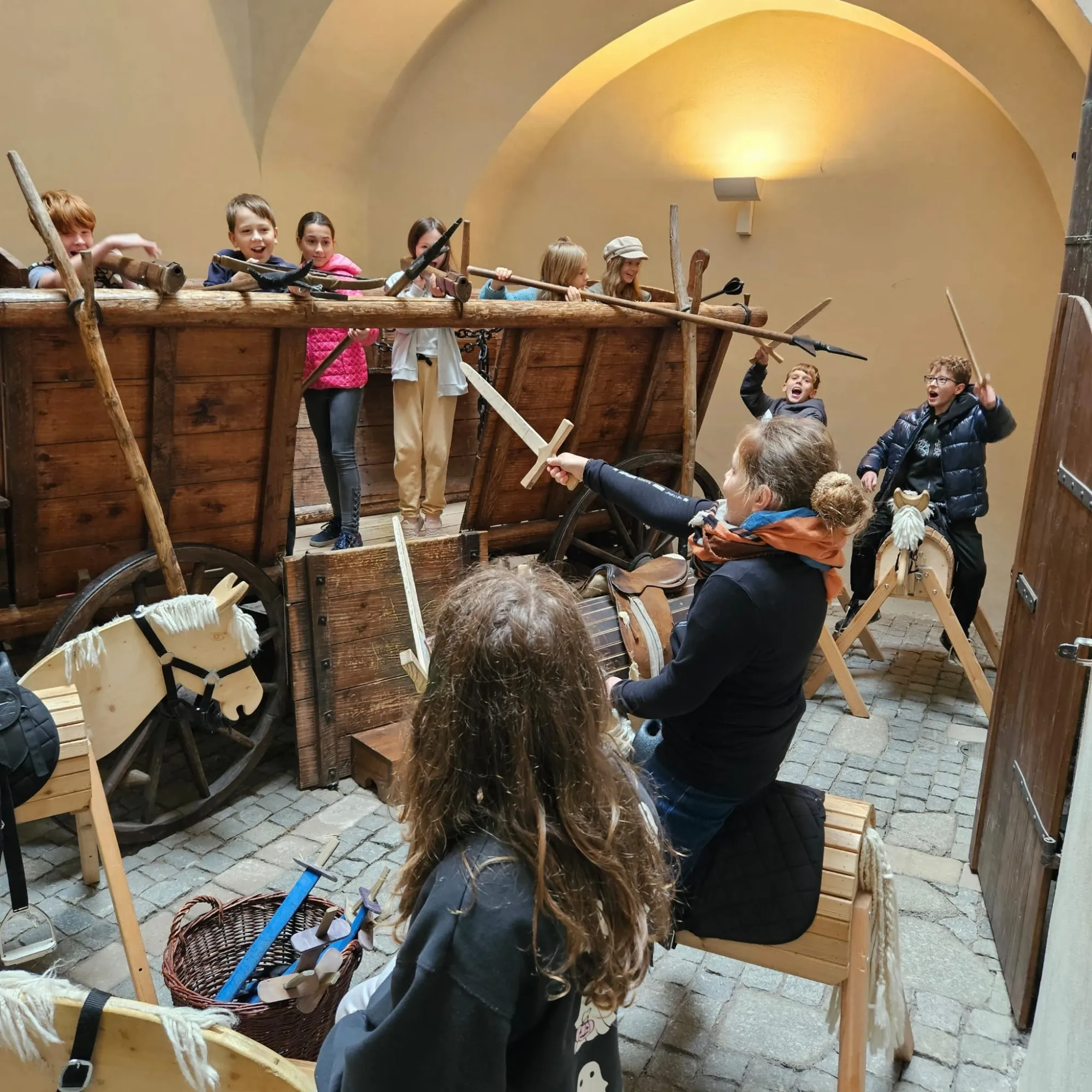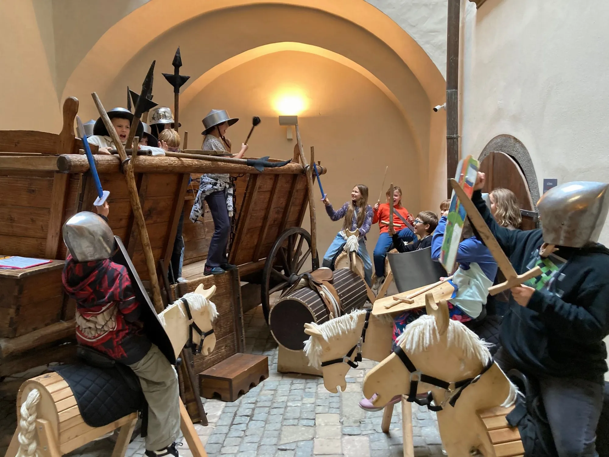 Žáci 5. A a 5. B se vydali na výlet do Tábora, aby zjistili více o husitských bojích. Nejenže v muzeu viděli mnoho dobových zbraní, obrazy, sochy, podzemní sklepení, ale zkusili i obranu husitských vojsk na vozové hradbě a útok křižáckých vojsk na koních.