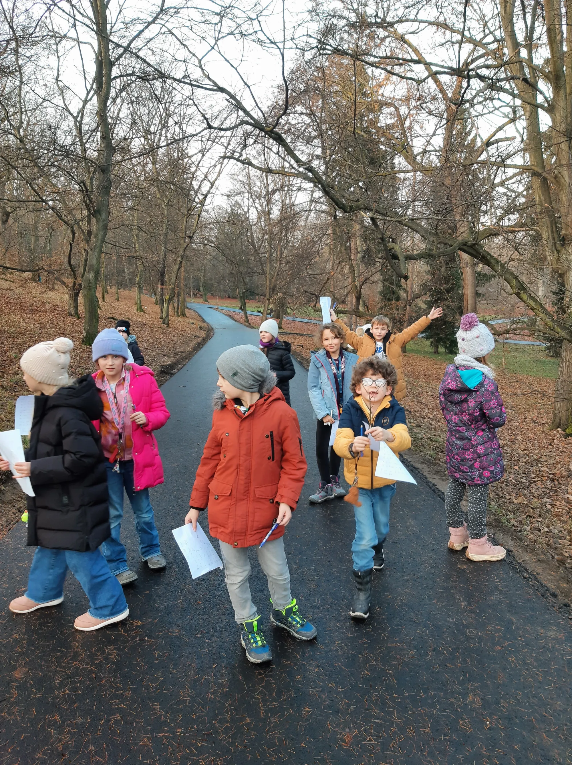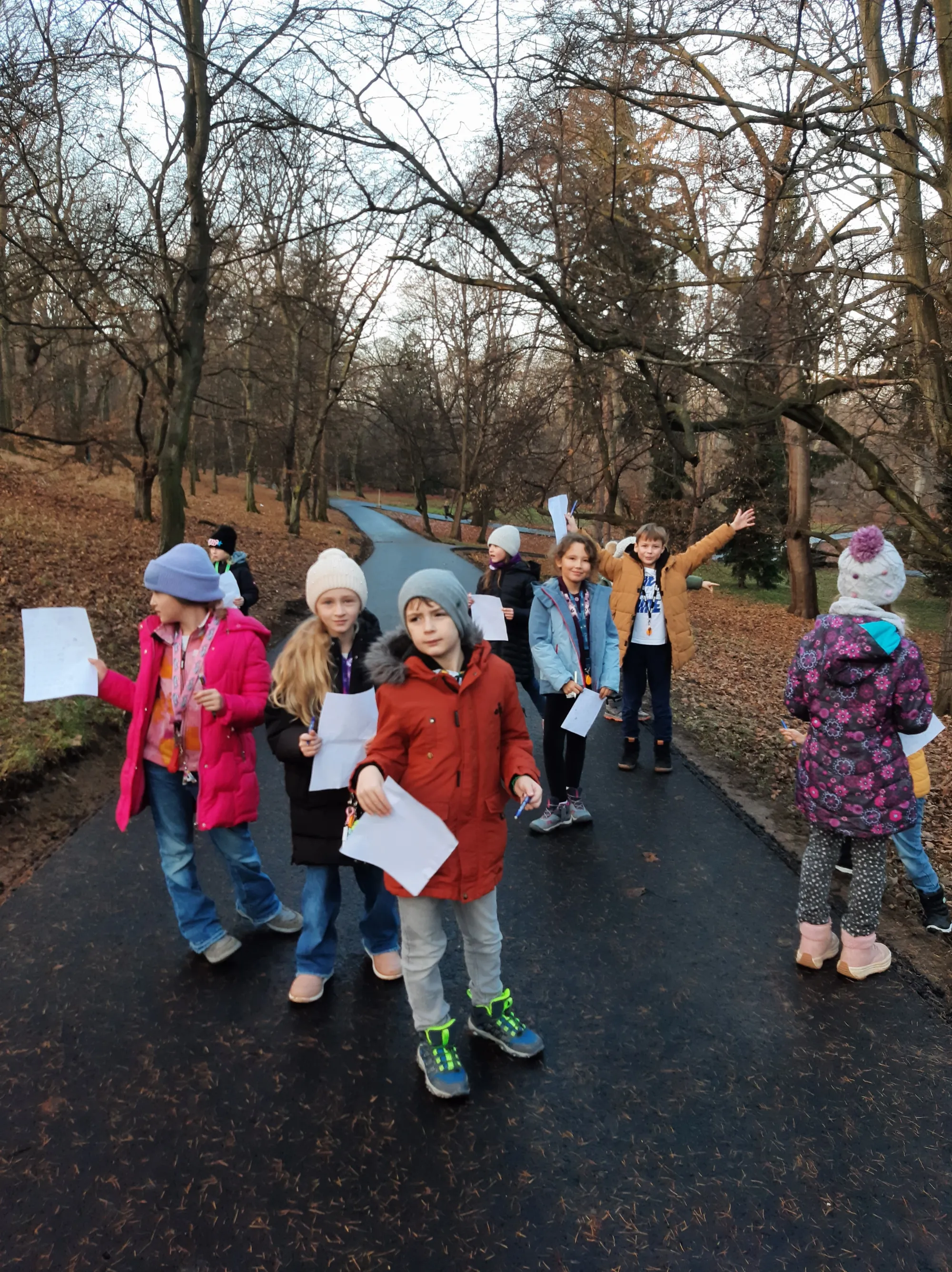 3.A a 3.C hledala různé předměty jako: a stick, a rock, pebbles, které se budeme učit v naáledující lekci po Vanocích."