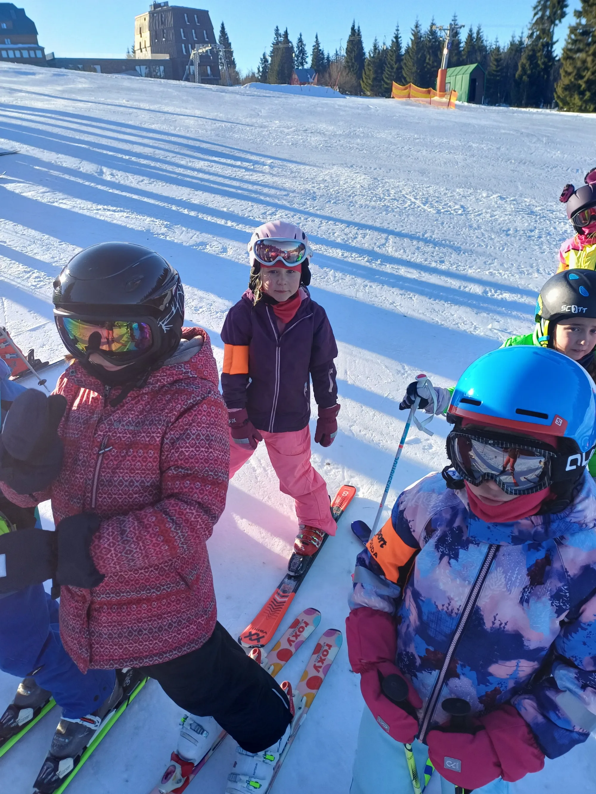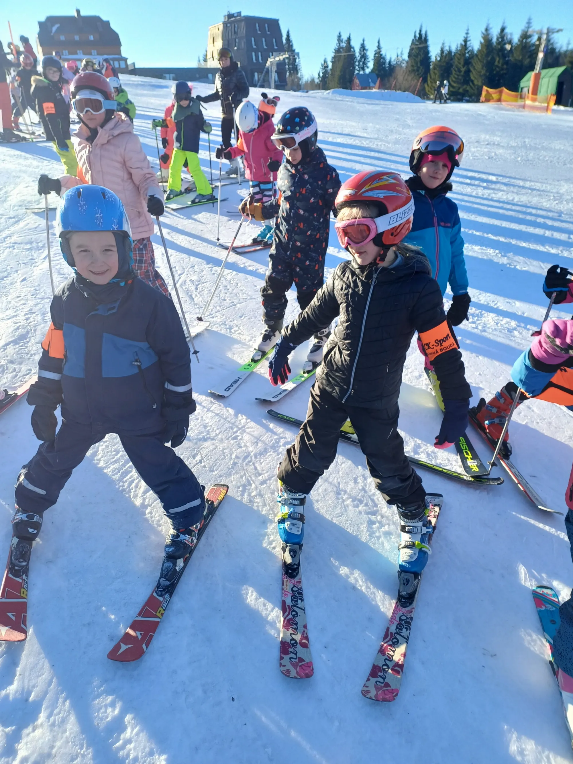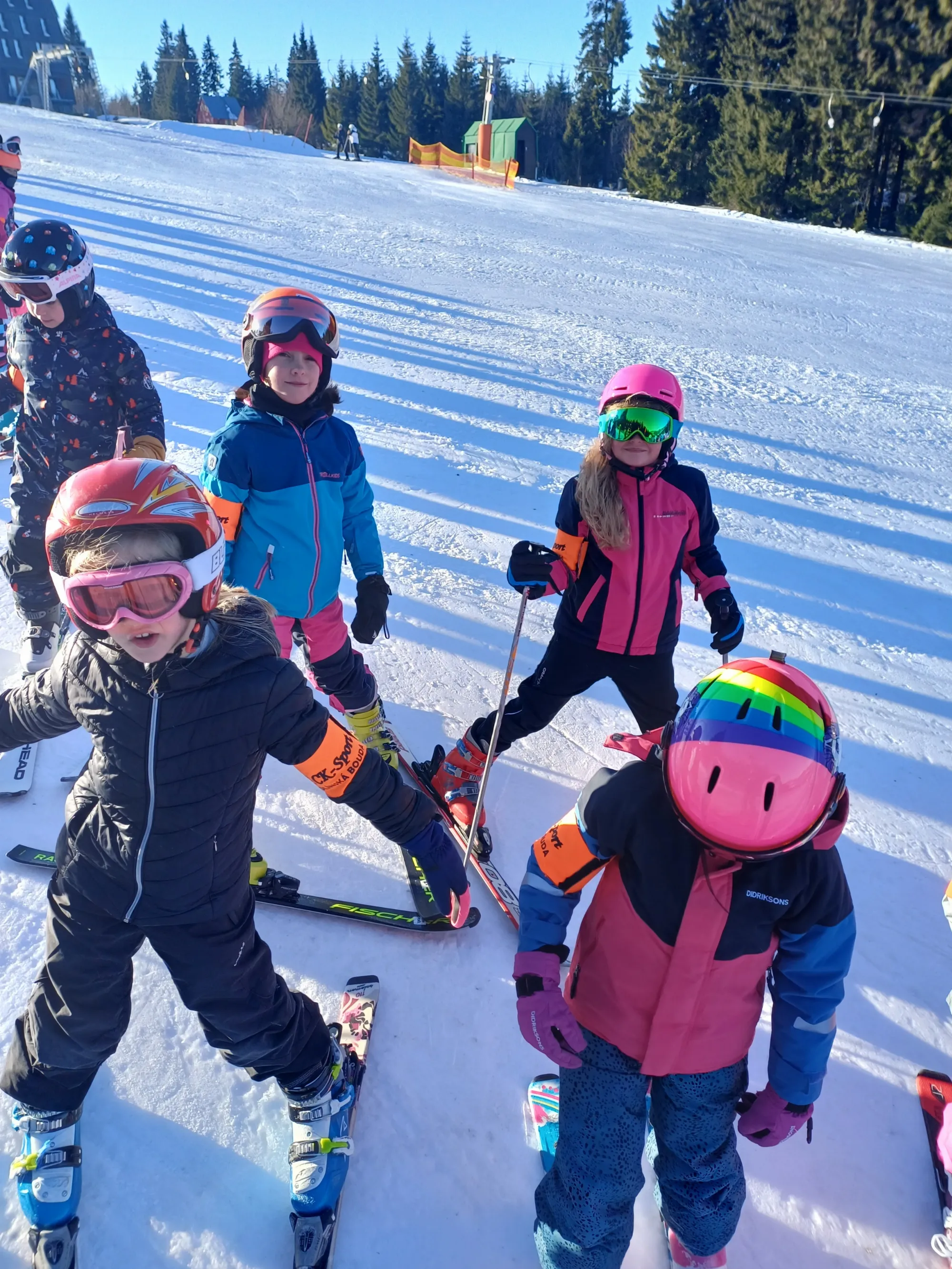 Tento týden tráví třídy 1.A, 1.B a 3.C na Kolínské boudě v Krkonoších. Do školy nám od nich dorazil pozdrav a fotografie, které dokládají, jak si děti pobyt na horách, hezké počasí, sníh a lyže užívají.