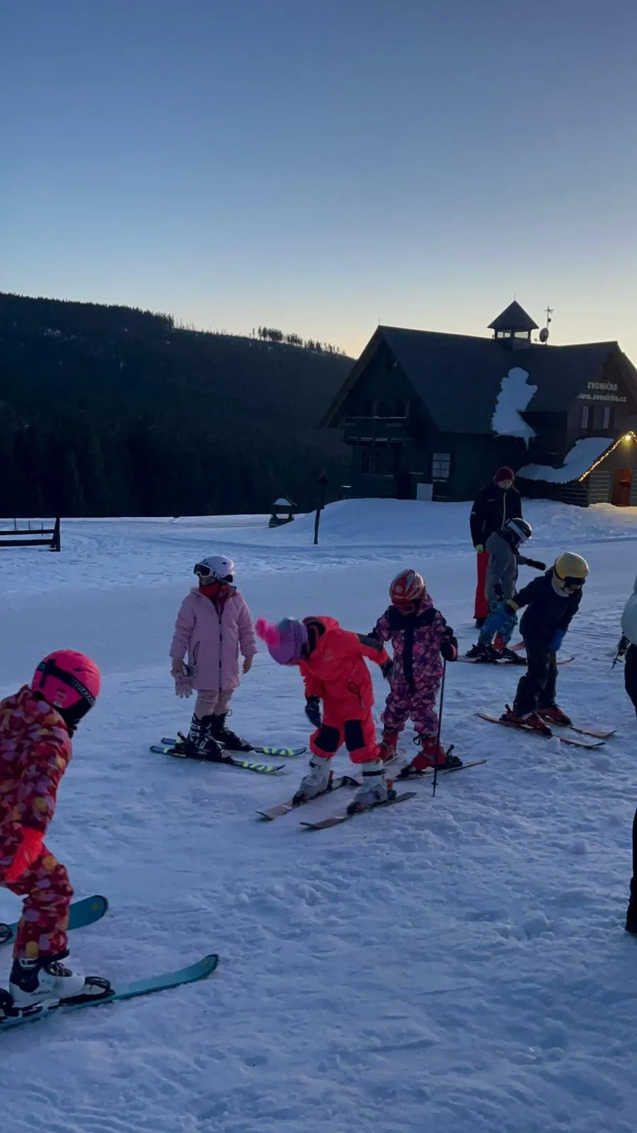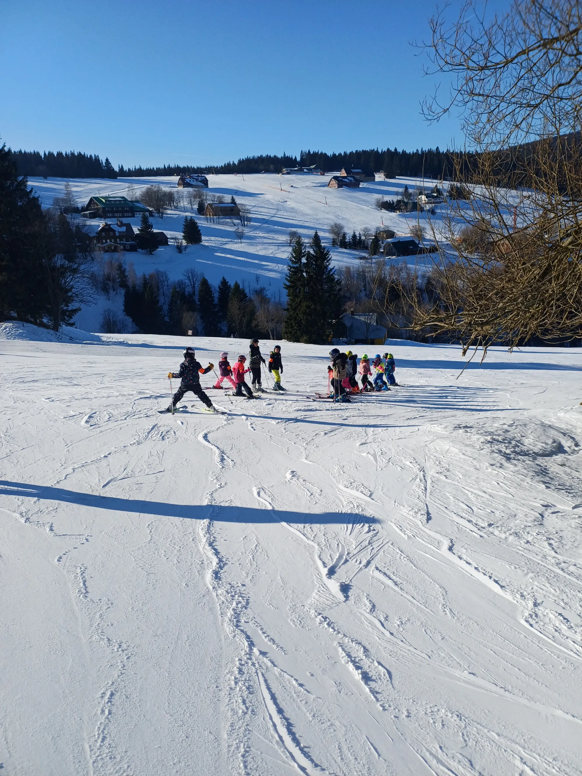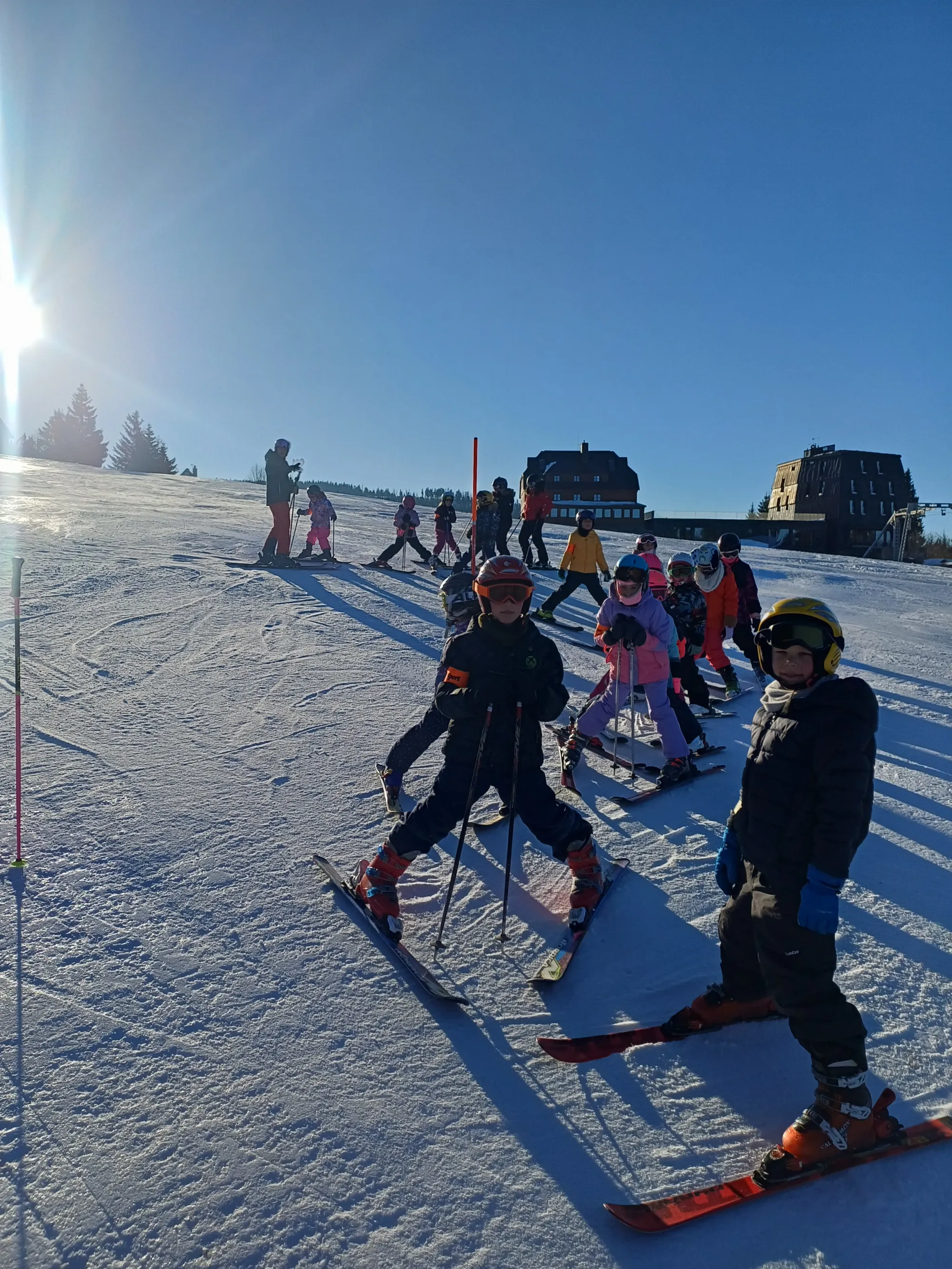 Tento týden tráví třídy 1.A, 1.B a 3.C na Kolínské boudě v Krkonoších. Do školy nám od nich dorazil pozdrav a fotografie, které dokládají, jak si děti pobyt na horách, hezké počasí, sníh a lyže užívají.