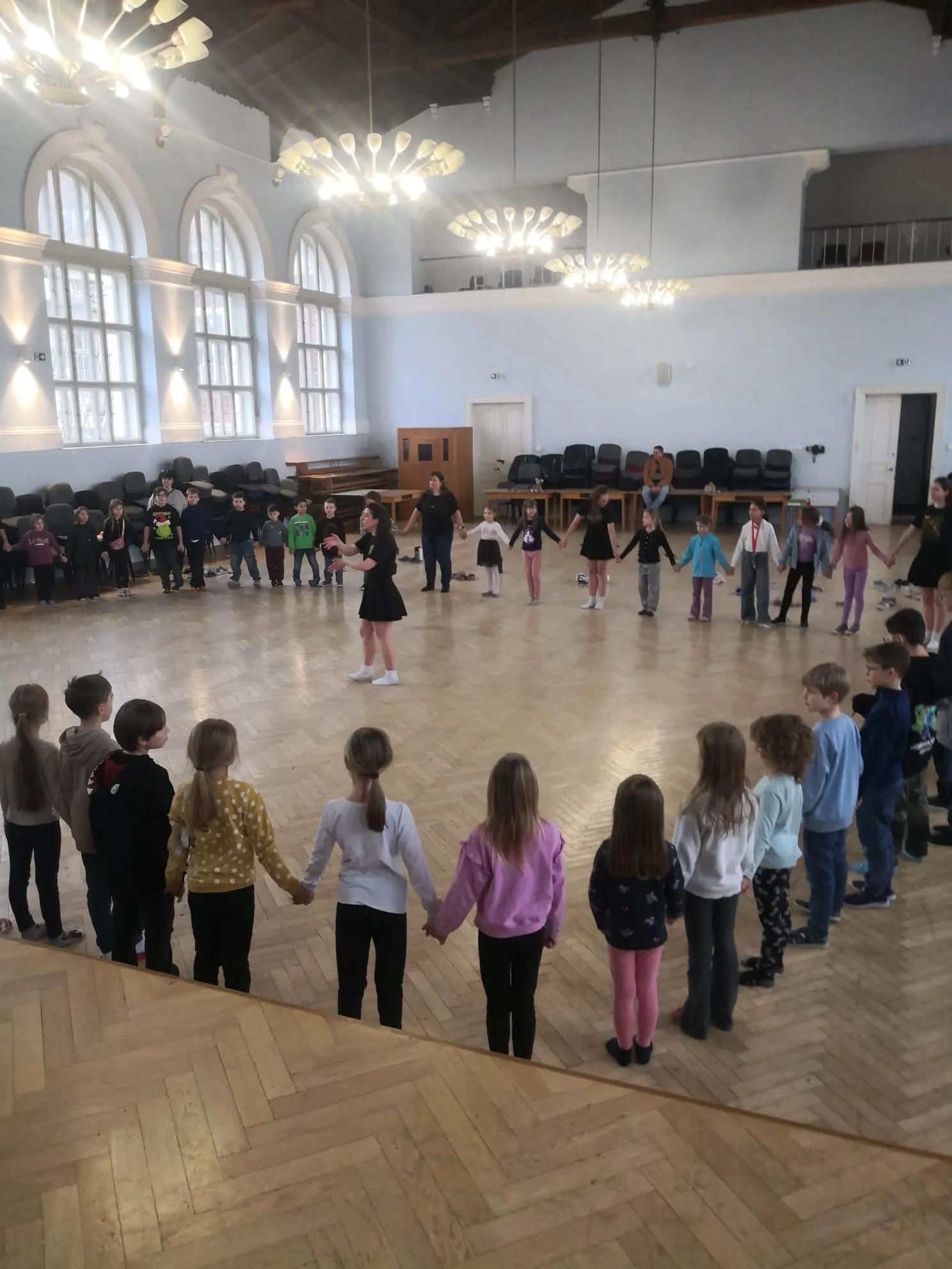 V aule naší školy proběhla v úterý odpoledne pro děti ze školní družiny ukázková hodina irských tanců a stepu. Děti se seznámily nejen s irskou hudbou a rytmem, ale také si samy vyzkoušely základní taneční kroky a jednoduchý taneček v rámci praktického nácviku. Celé setkání proběhlo v příjemné atmosféře a všichnii si netradiční taneční zážitek moc užily.