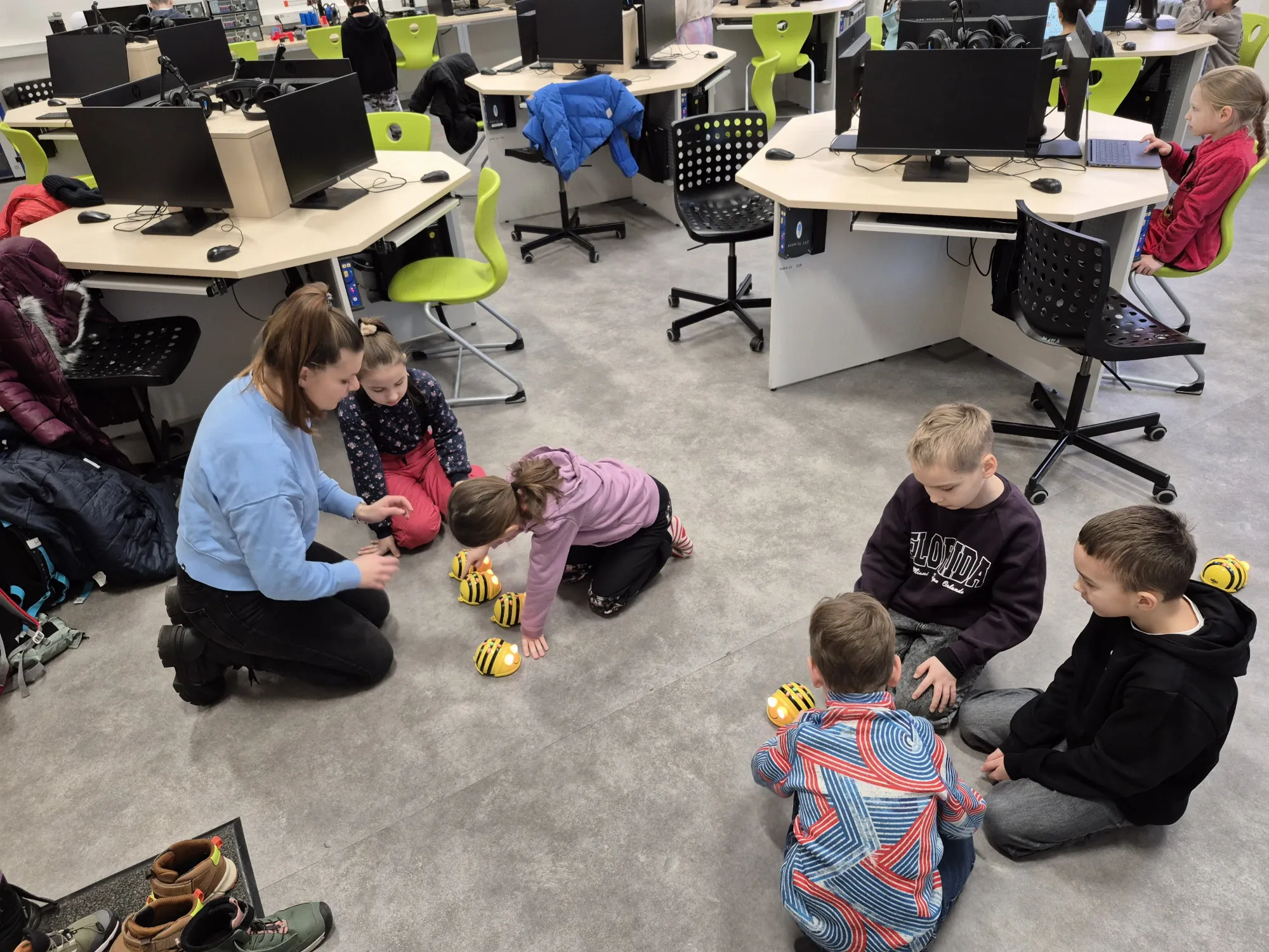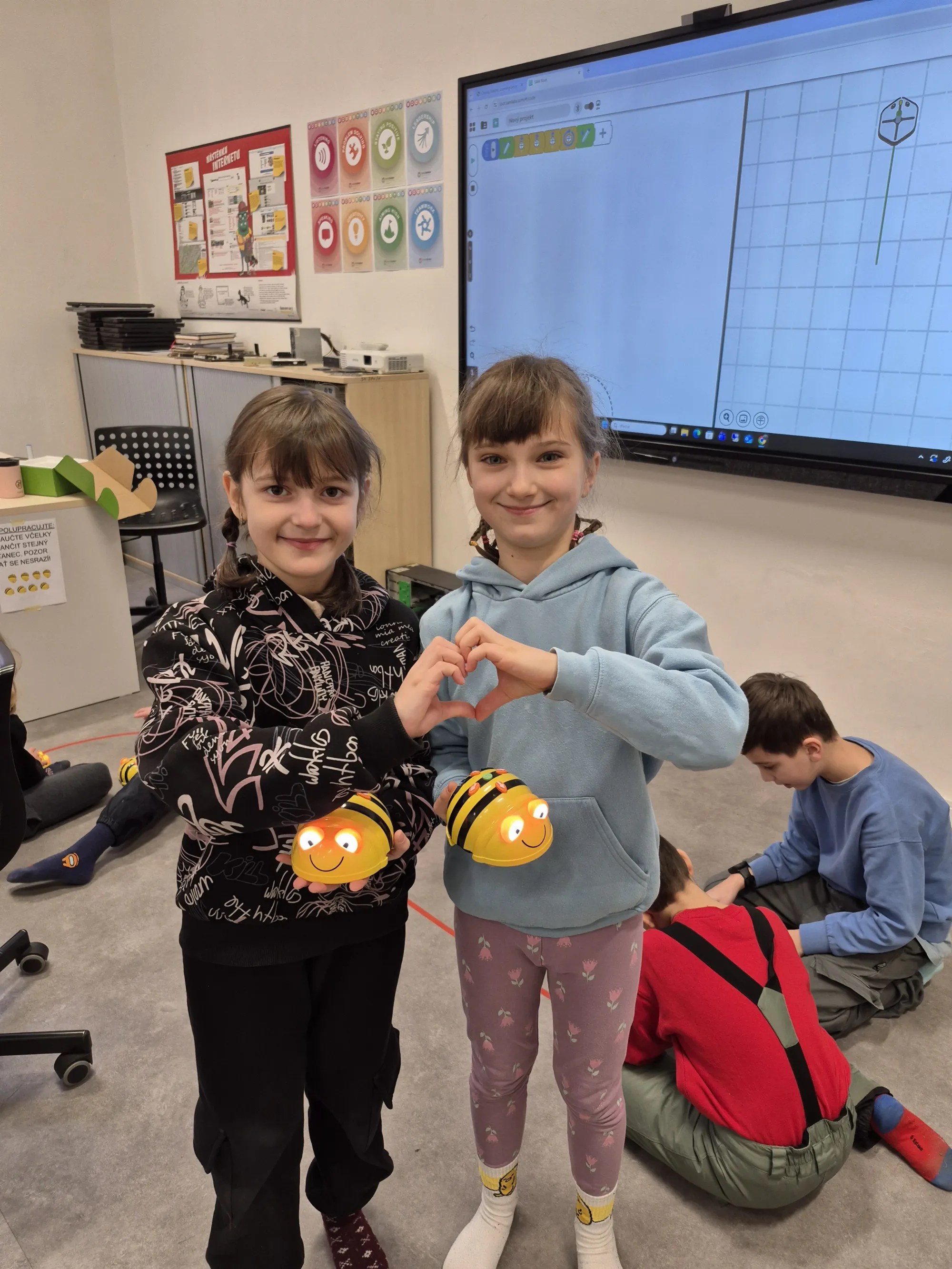 Během návštěvy si vyzkoušeli, jak fungují základy programování v praxi. Pracovali s malými výukovými roboty – „včeličkami“, které programovali pomocí jednoduchých příkazů.
