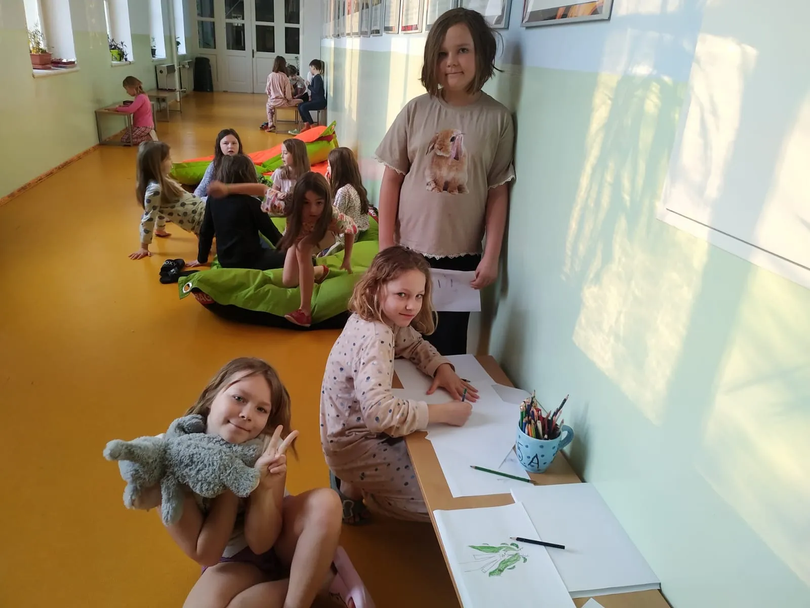 16.4. se děti ze třídy 3.A sešly na první přespání ve škole. Čekala je noční výprava za Sv. Lebkounem, kde se podepsaly. Svou statečností si splnily bobříka odvahy.